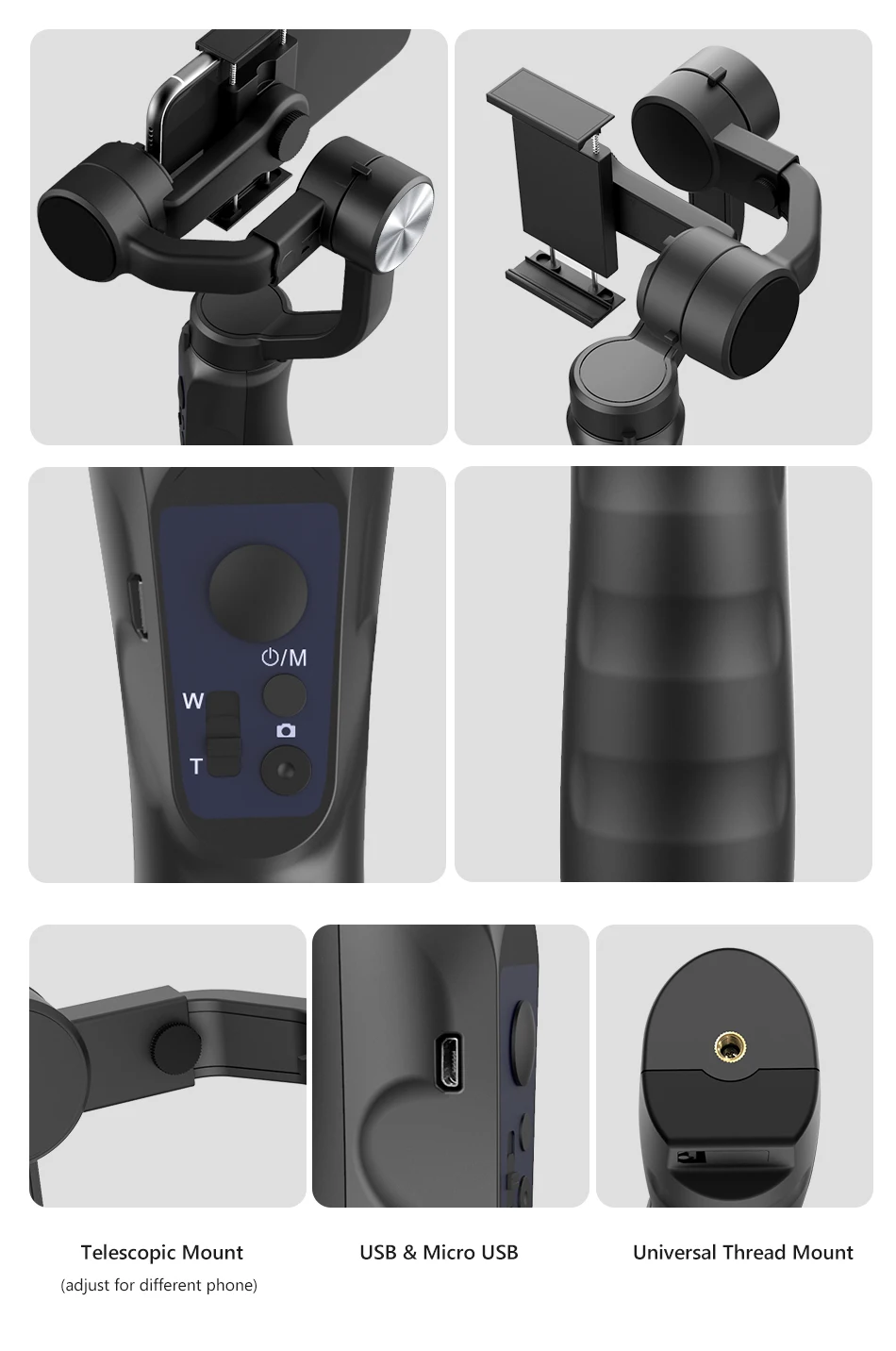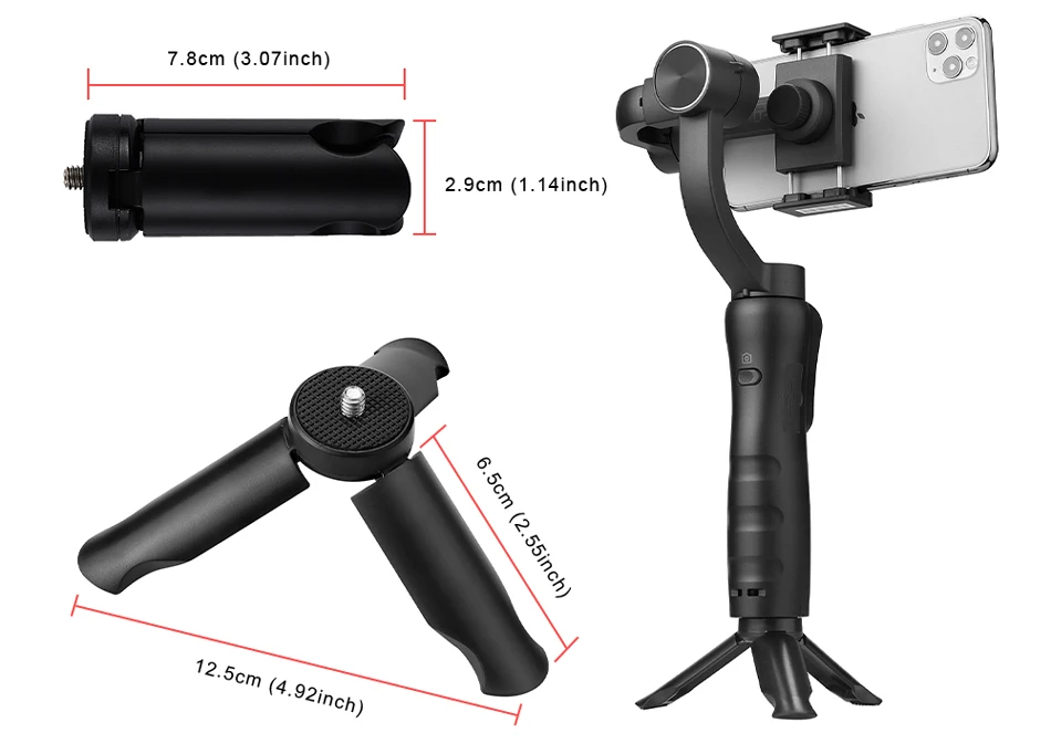 Universal: Pode funcionar perfeitamente com telefones celulares para tirar fotos e vídeos estáveis e suaves. Suporte para iPhone, para Samsung, para Galaxy, para Huawei.