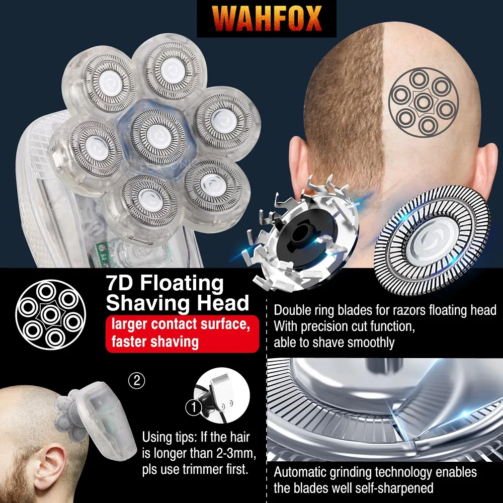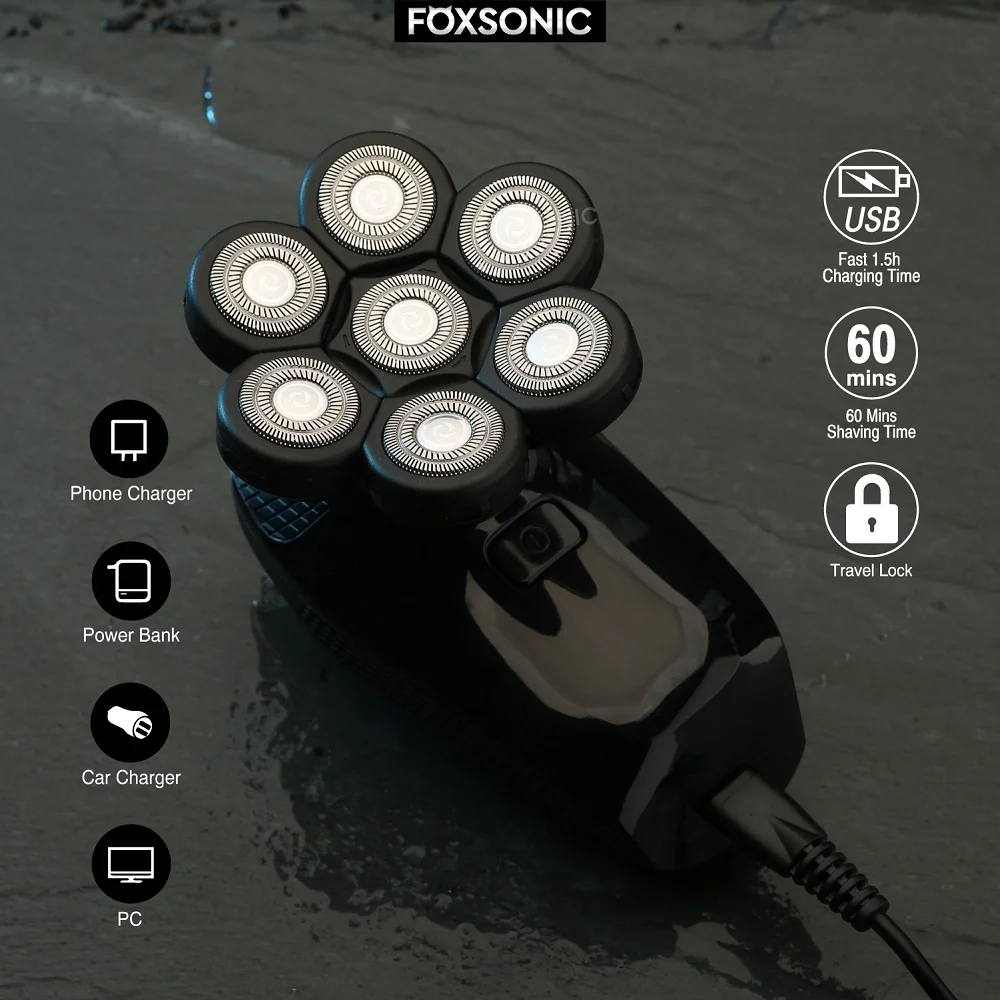 ?Carregamento Rápido USB?2 horas de carga rápida USB, o barbeador de cabeça elétrico fornecerá barbear consistente de mais de 90 minutos, funciona perfeitamente no modo plug e sem fio. Display digital claro irá lembrá-lo quando precisar recarregar, evitar a barba puxando causada pelas lâminas de barbear ficar sem energia. É perfeito para todos os empresários, viajantes e uso doméstico.