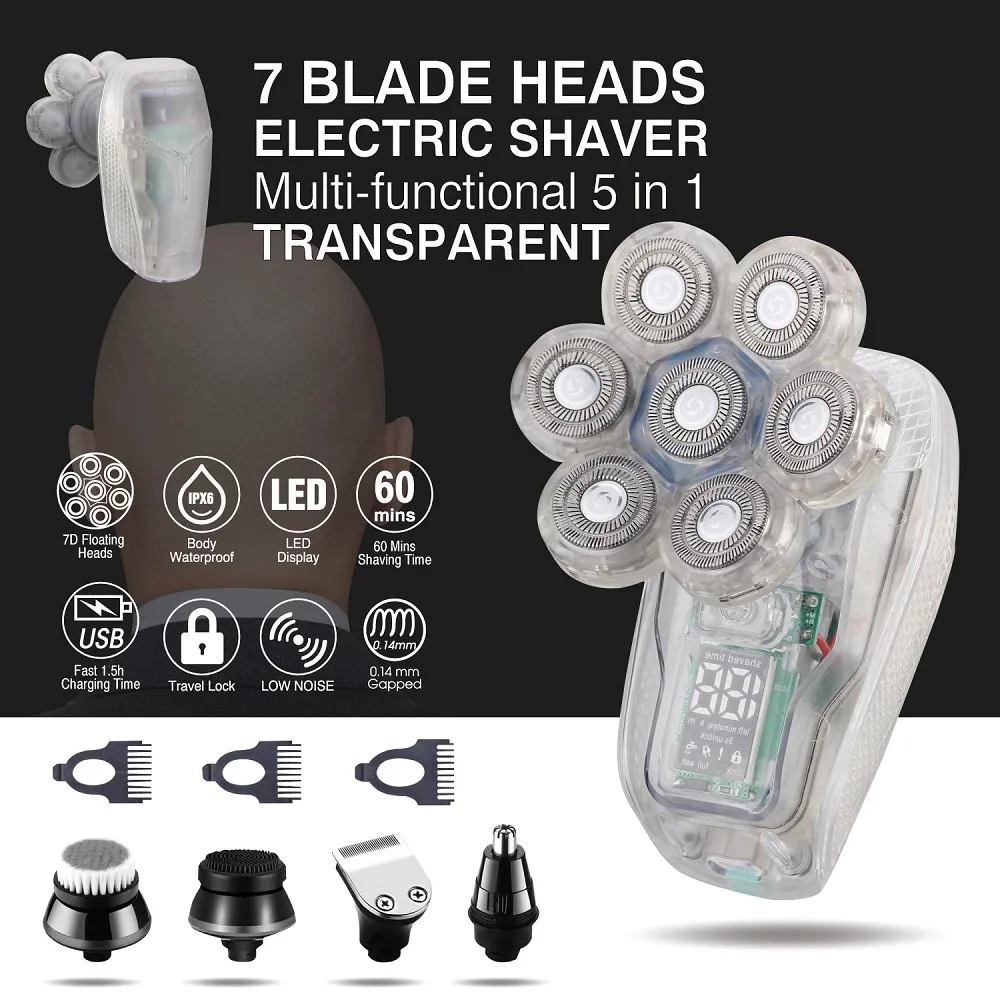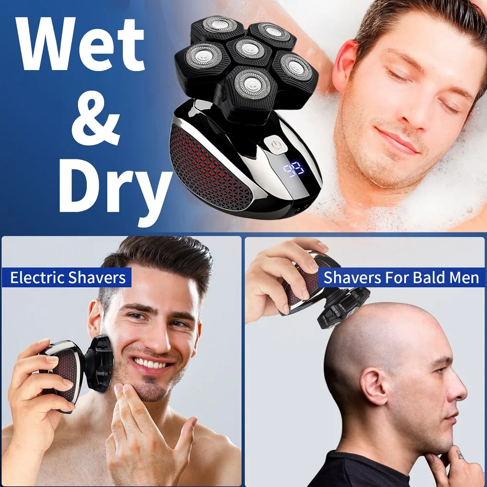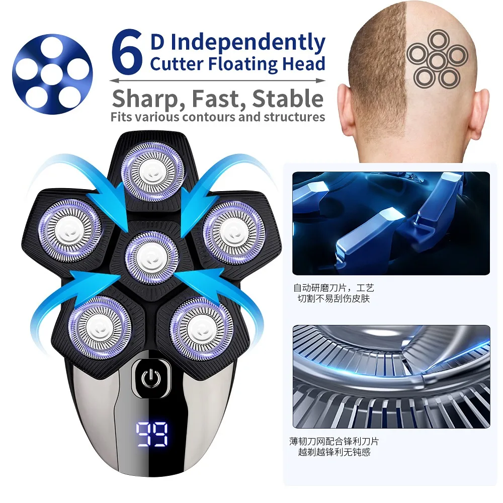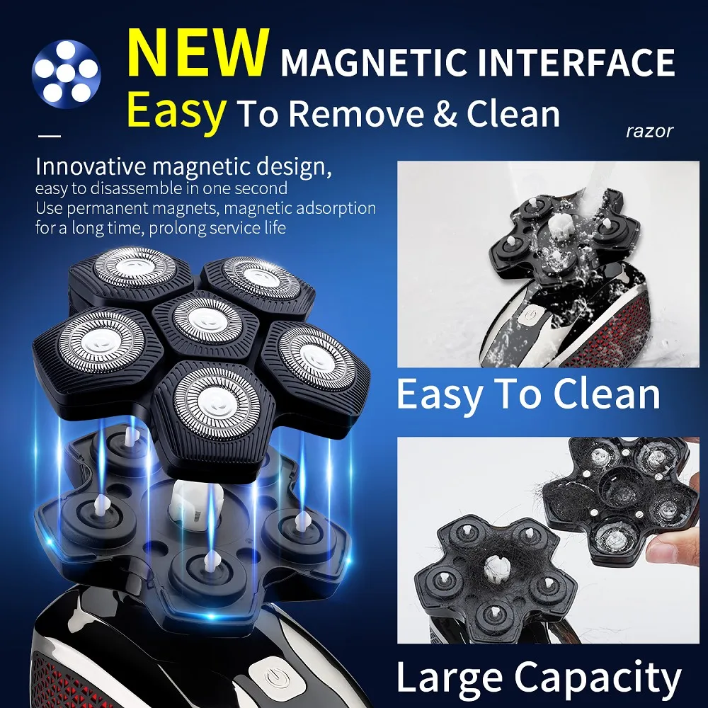 Design exclusivo Magnetic Interface 6 Lâminas 6 Cabeças Barbeador Elétrico Cabeça 5 em 1 Barbeadores Elétricos para Homens Bald Razor Wet Dry Mens Grooming Kit