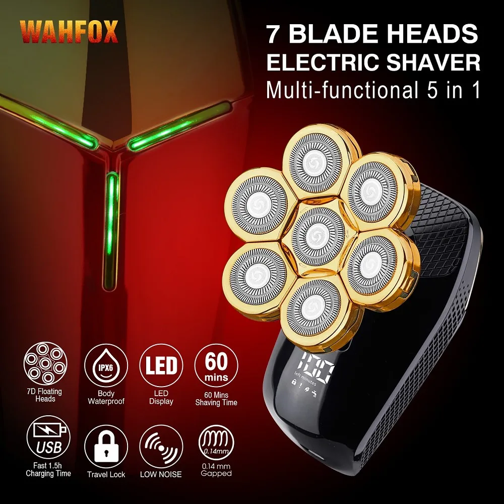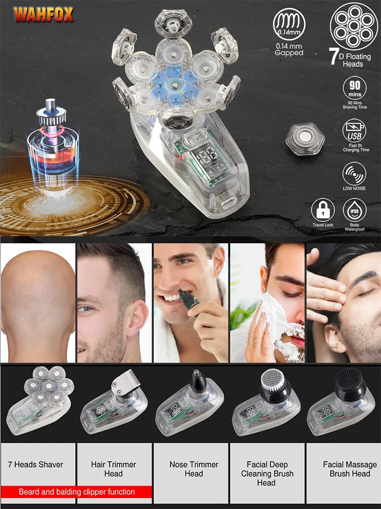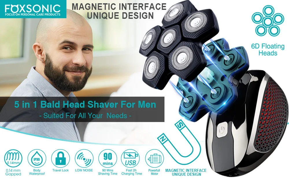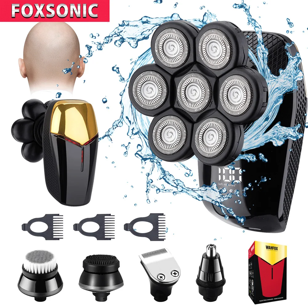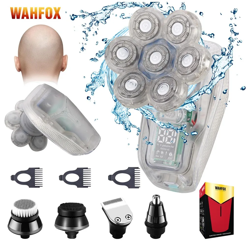 Design exclusivo Magnetic Interface 6 Lâminas 6 Cabeças Barbeador Elétrico Cabeça 5 em 1 Barbeadores Elétricos para Homens Bald Razor Wet Dry Mens Grooming Kit