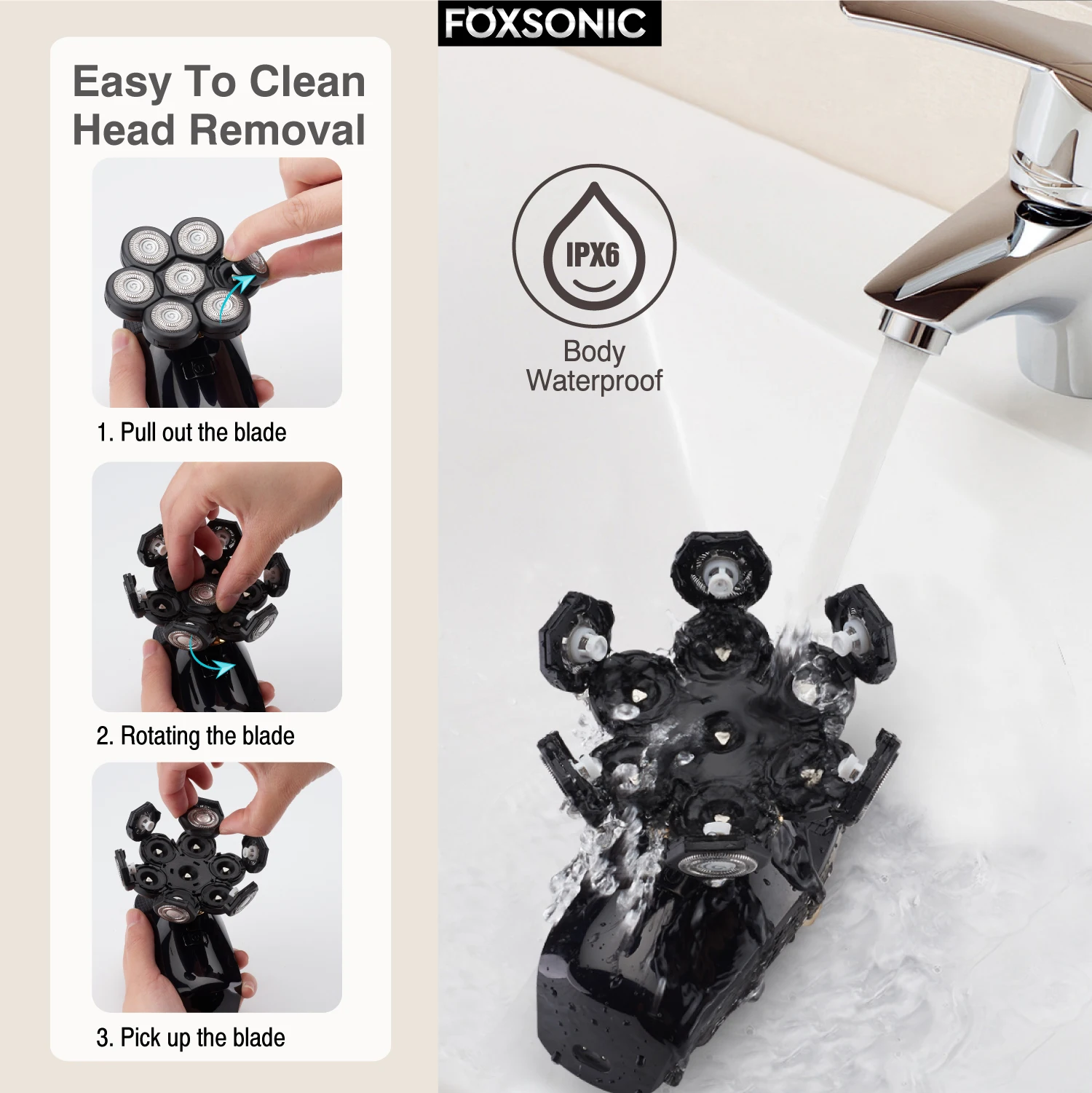 ?Shavar a seco úmido e fácil limpeza?A tecnologia IPX6 Waterproof permite que você raspar molhado com gel ou espuma para proteção extra da pele ou secar por conveniência.