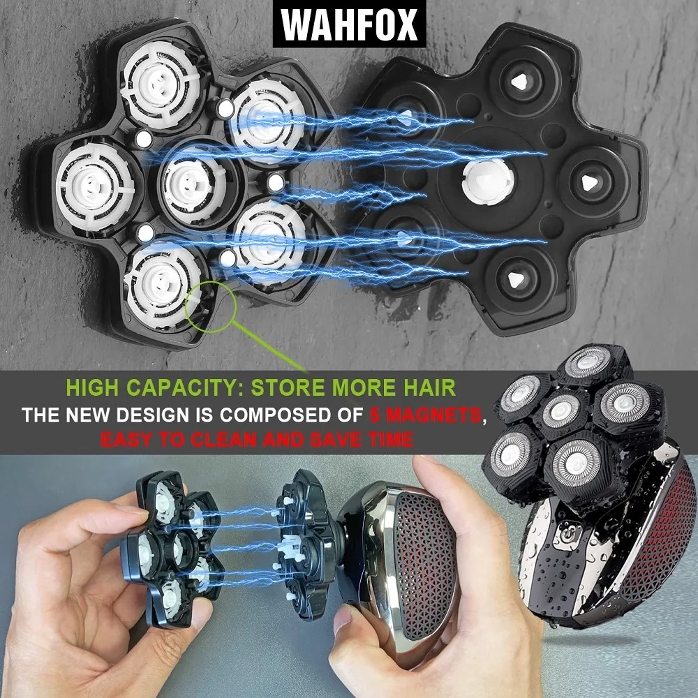 Design exclusivo interface magnética 6 lâminas 6 cabeças cabeça elétrica barbeador substituição cabeça lâminas